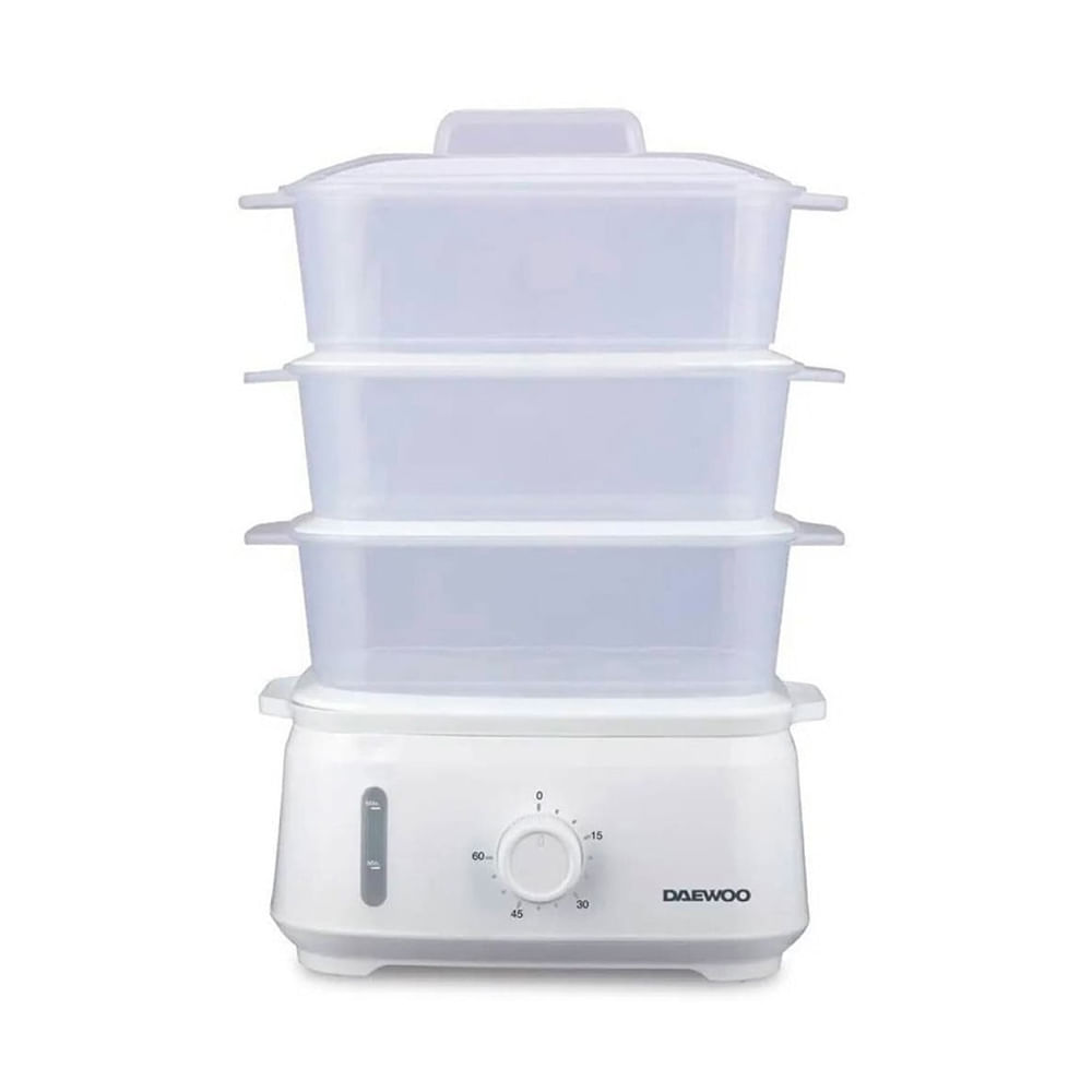 La Vaporera Eléctrica Daewoo es la solución perfecta para quienes buscan una forma saludable y eficiente de cocinar. Con una potencia de 900W y una capacidad total de 9 litros, permite preparar múltiples alimentos simultáneamente gracias a sus 3 bandejas apilables. Su temporizador de 60 minutos y el depósito de agua de 1,8 litros con indicador garantizan un cocinado preciso y sin complicaciones. Además, cuenta con una base desmontable y una bandeja de goteo que facilitan la limpieza.